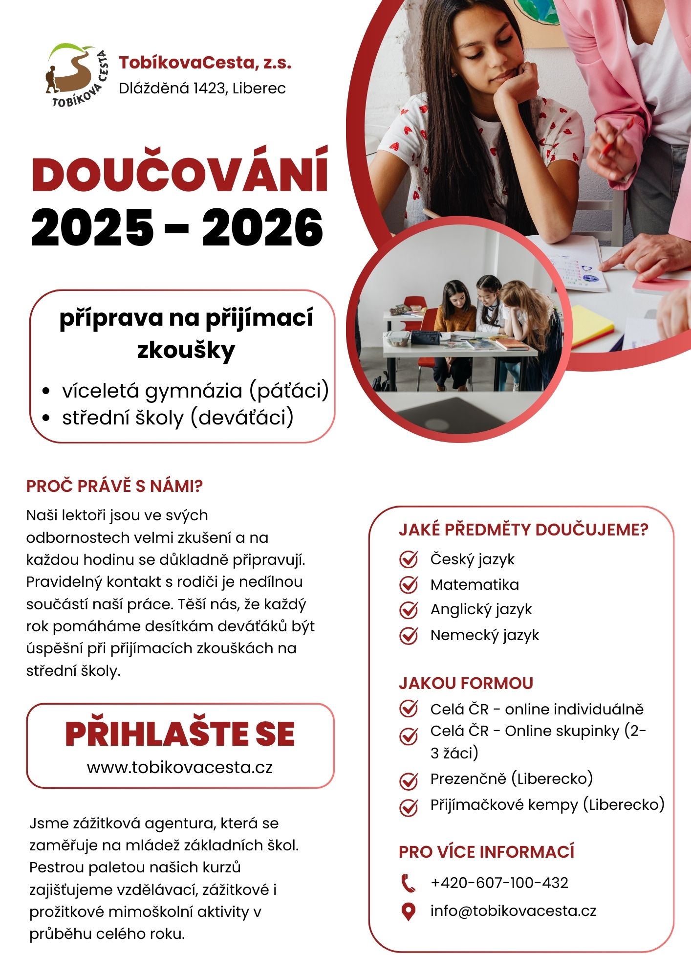 Intenzivní přípravný kurz k přijímacím zkouškám na střední školy a víceletá gymnázia.